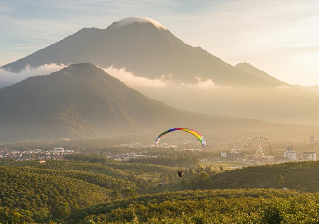 Untuk Anda yang mencari adrenalin, Gunung Banyak menawarkan pengalaman paralayang yang tak terlupakan. Meluncur dari ketinggian 1.300 mdpl di atas hamparan hijau Kota Batu adalah pengalaman yang benar-benar epik. Pemandangan perbukitan yang diselimuti kabut dan kota yang terlihat kecil dari atas akan menjadi latar belakang sempurna untuk momen seumur hidup Anda. Instruktur profesional akan menemani Anda, jadi jangan khawatir jika Anda pemula. Sensasi angin membelai wajah dan kebebasan di udara akan membuat Anda merasa seperti burung.